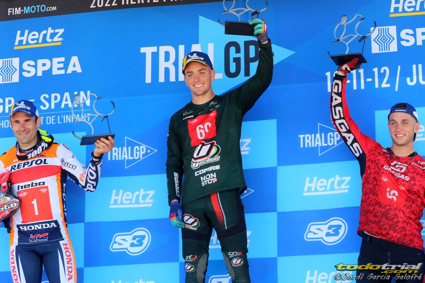 Die extrem heißen Bedingungen in Hospitalet de l'Infant stellten Fahrer und Maschinen an zwei äußerst anspruchsvollen Wettkampftagen auf die Probe. Am Eröffnungstag war der Kampf um den Sieg zwischen mehreren Fahrern intensiv, mit ständigen Änderungen in der Rangliste und sehr engen Interpunktionen. Nach Runde 1 durch die 12 Abschnitte lag Busto auf dem 3. Platz in der Gesamtwertung, die nur 2 Punkte zwischen dem 1. und dem 4. Platz hatte. Es war in Runde 2, als Busto wirklich eine Leistung zeigte, die kein anderer erreichen konnte, und den Fans mit seinem einzigartigen Stil und seiner Technik eine großartige Show lieferte. Er landete mit nur 5 Punkten und einer Endnote von 29, 6 weniger als Toni Bou und 16 vor M.Gelabert.
