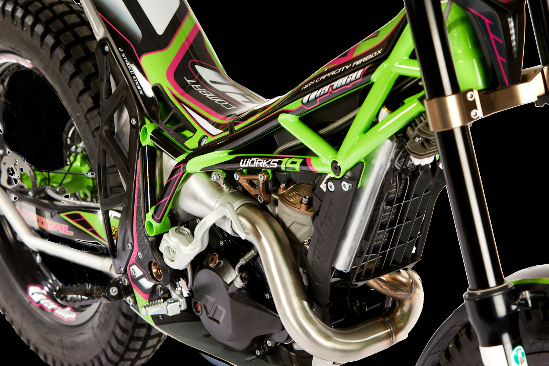 Die Combat Vertical 2018 verfügt über viele interessante dynamische und technische Komponenten, die unsere ehemaligen Camo und Ice Hell Modelle noch nicht hatten. Innovation und Forschung waren zwei Attribute, die Vertigo von Anfang an besessen hat. Diese Aspekte wurden sorgfältig berücksichtigt, um diese Vertigo Combat Vertical 2018 zu bauen, ein Motorrad, das aus dem Besten seiner Vorgänger entspricht. Unseren Kunden wird ein Motorrad mit großen Versprechen präsentiert, um unseren geliebten Sport zu genießen. Dieses neue Modell bedeutet einen neuen Schritt nach vorne für die Marke, die ihr Engagement verstärken will, um sich weiter zu verbessern und in der Trialinsustrie zu wachsen.