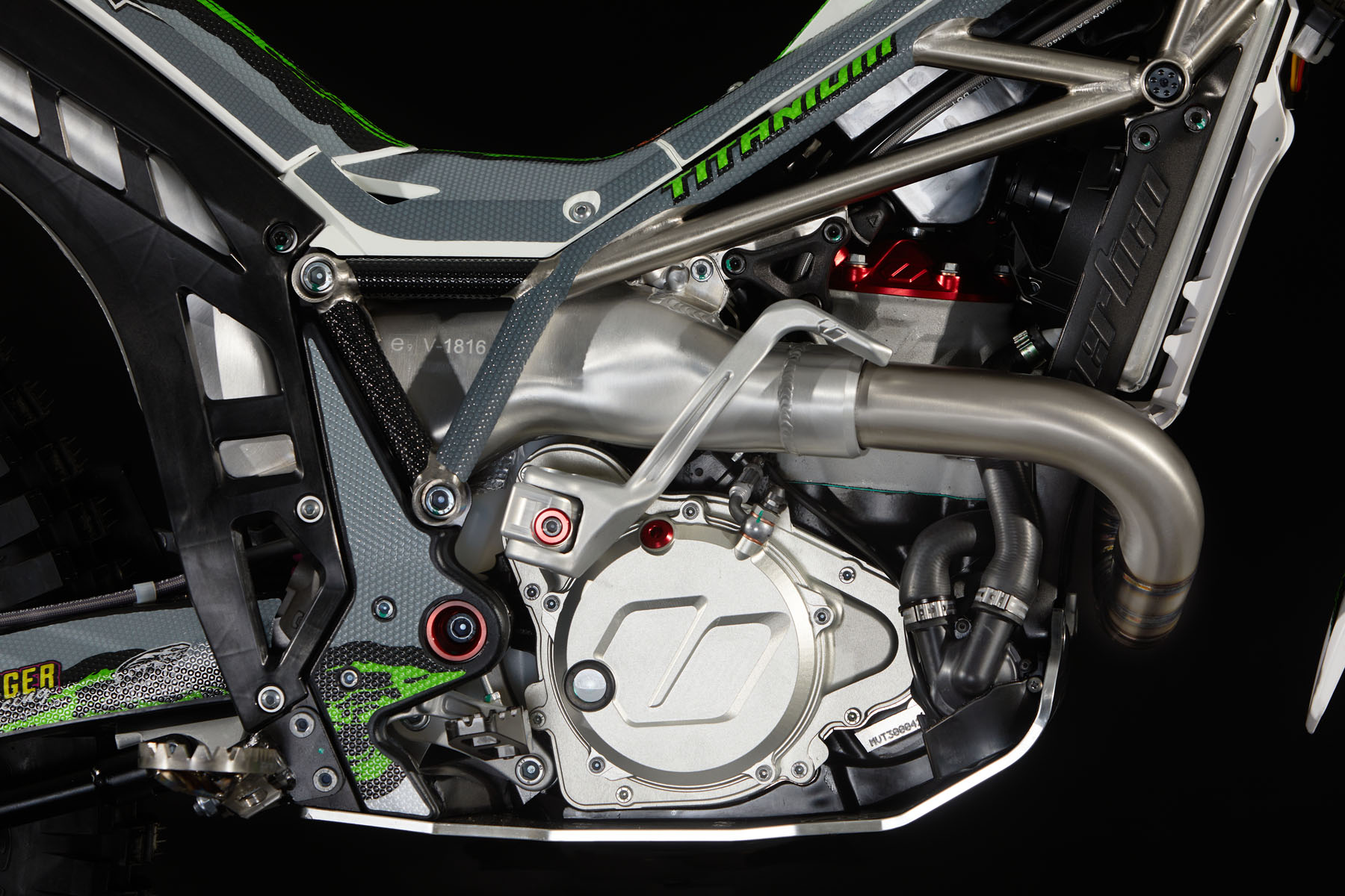 Weitere unverwechselbare Komponenten des Titanium R 2022 sind die Raptor-Fußrasten, auf denen die Seriennummer eingraviert ist, wie auf dem Chassisschild der limitierten Serie.