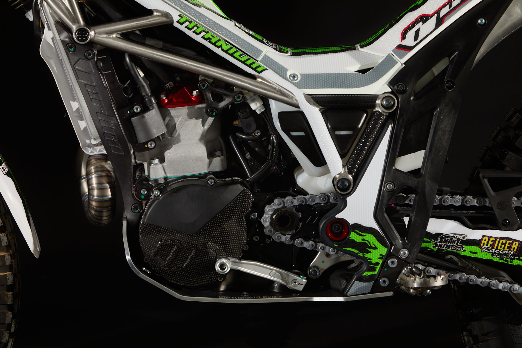 Die Ausstattungsliste des Titanium R 2022 führt auch einen 6 mm Costa Parts Kurbelgehäuseschutz aus Aluminium 7075, der allen Komponenten einen außergewöhnlichen Schutz bietet.